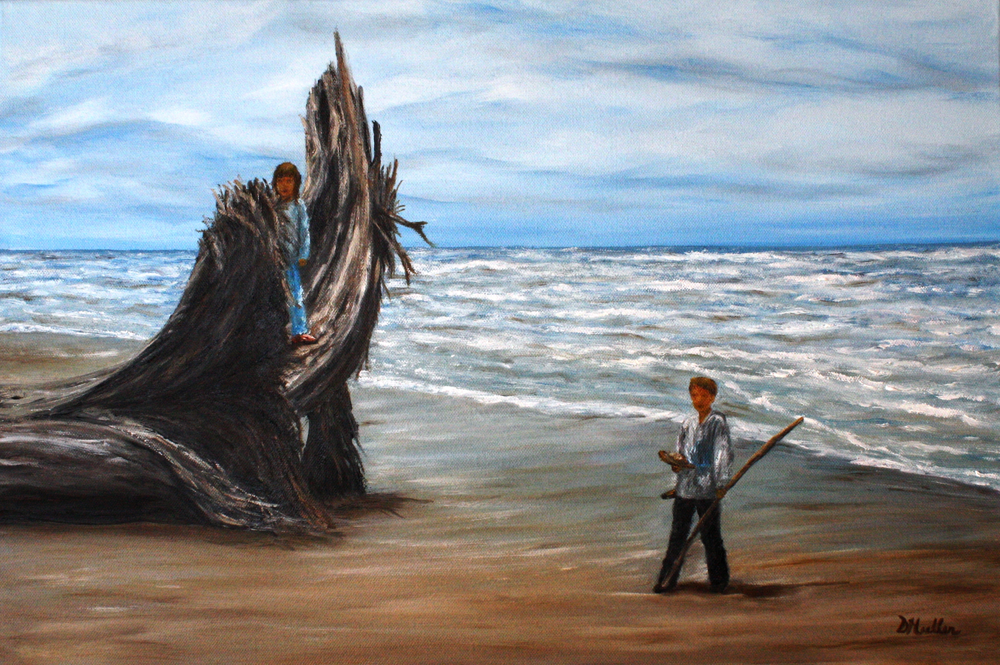 228 Collecting Driftwood (Ernest and Stephanie out on the Beach) oil
