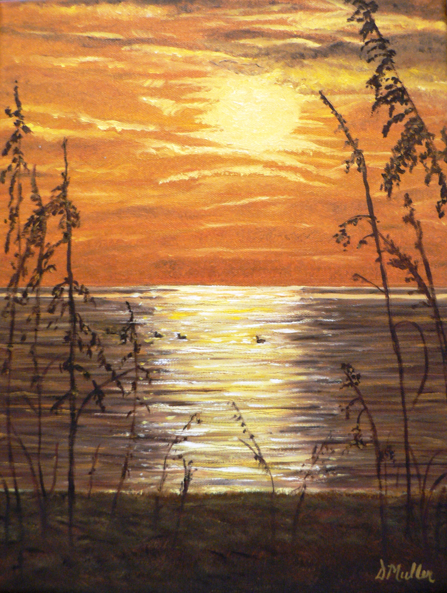 Sun Setting, 16″ x 20″, in wooden varnished frame, oil, $275.00